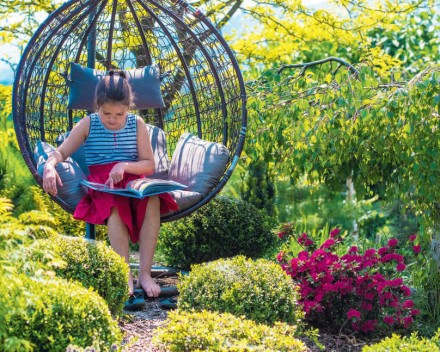 Kołysanie jako forma wprowadzania się w stan relaksu ma ugruntowane w badaniach podłoże fizjologiczne. To, że działa bardzo korzystnie na zasypianie oraz kontynuowanie spokojnego snu wiemy już od dziecka. Potwierdzono jednak, również to, że kołysanie sprzyja synchronizacji aktywności neuronów, które odpowiadają za konsolidację procesów pamięciowych (czyli mówiąc potocznie, pozwalają na prawidłowe utrwalanie nabytych informacji). Rytmiczna stymulacja mózgu podczas bujania, szczególnie w trakcie snu, przyczynia się do poczucia równowagi, poprawia procesy poznawcze, wzmacnia pamięć i orientację w przestrzeni. Przede wszystkim jednak daje nam głębokie i dosadne poczucie odprężenia. Latem więc koniecznie znajdźmy sposób na kołysanie się na świeżym powietrzu – na działce, w ogrodzie, na tarasie czy nawet na balkonie. Propozycji i rozwiązań znajdziemy bardzo wiele, zaczynając od tradycyjnych hamaków, poprzez sznurkowe huśtawki, po zawieszane na stelażach fotele w formie plecionych kokonów.